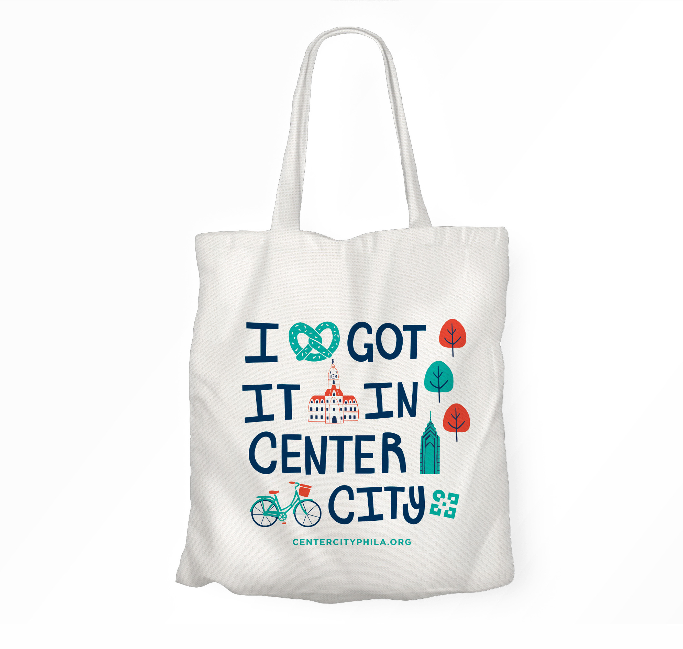 Using whimsical, hand-drawn illustrations of Center City’s most iconic symbols and landmarks, I created this tote bag to not only serve as a functional accessory but also as a memorable keepsake. The mission was to design something unique to give away at some of Center City District's events like SIPS and informational pop-ups.