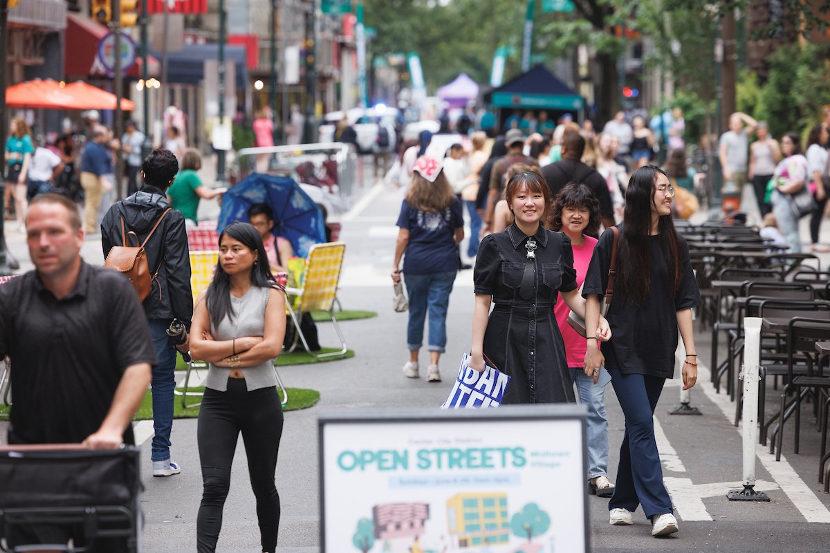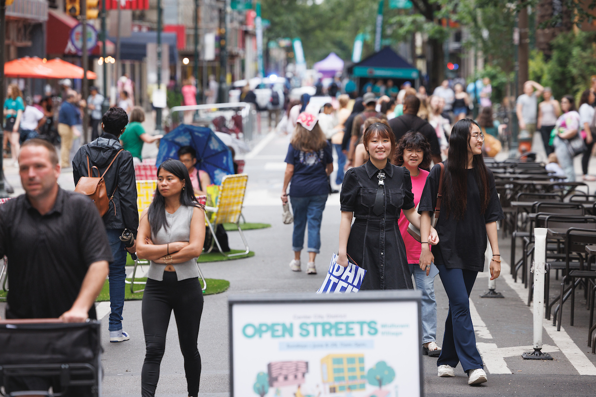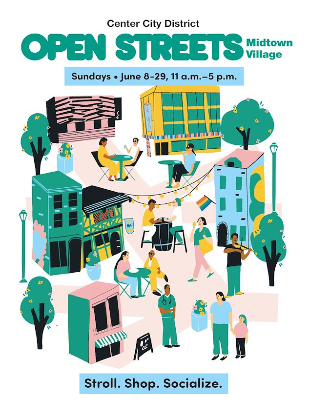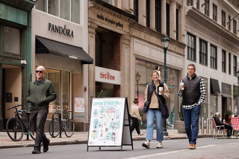 Center City District, with support from Rittenhouse Row, Midtown Village Merchant’s Association and the City of Philadelphia, temporarily close streets to vehicles, creating space for people to walk, bike, and enjoy public activities. During these closures, pedestrians are invited to stroll nearly six blocks of car-free space while enjoying expanded outdoor dining, shopping and ambient entertainment for all ages.